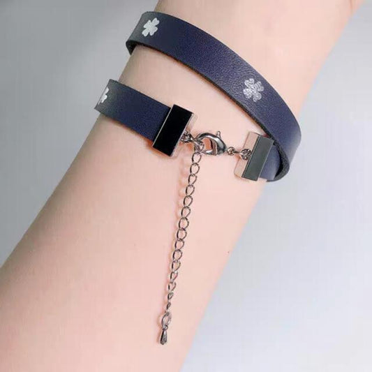 Dior Black Leather Double Tour Bracelet with Clover Charm