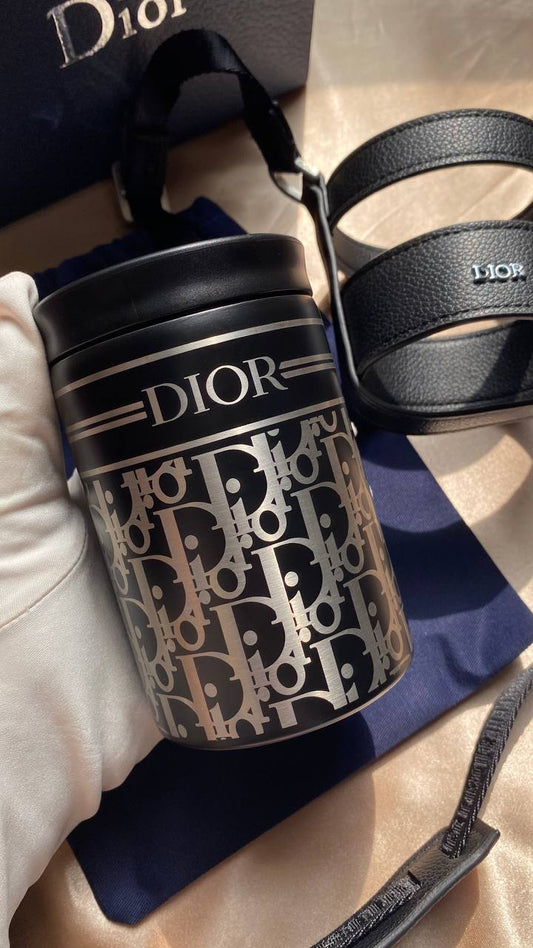 Dior Stainless Steel Mug with Shoulder Strap (Black - 350ml)